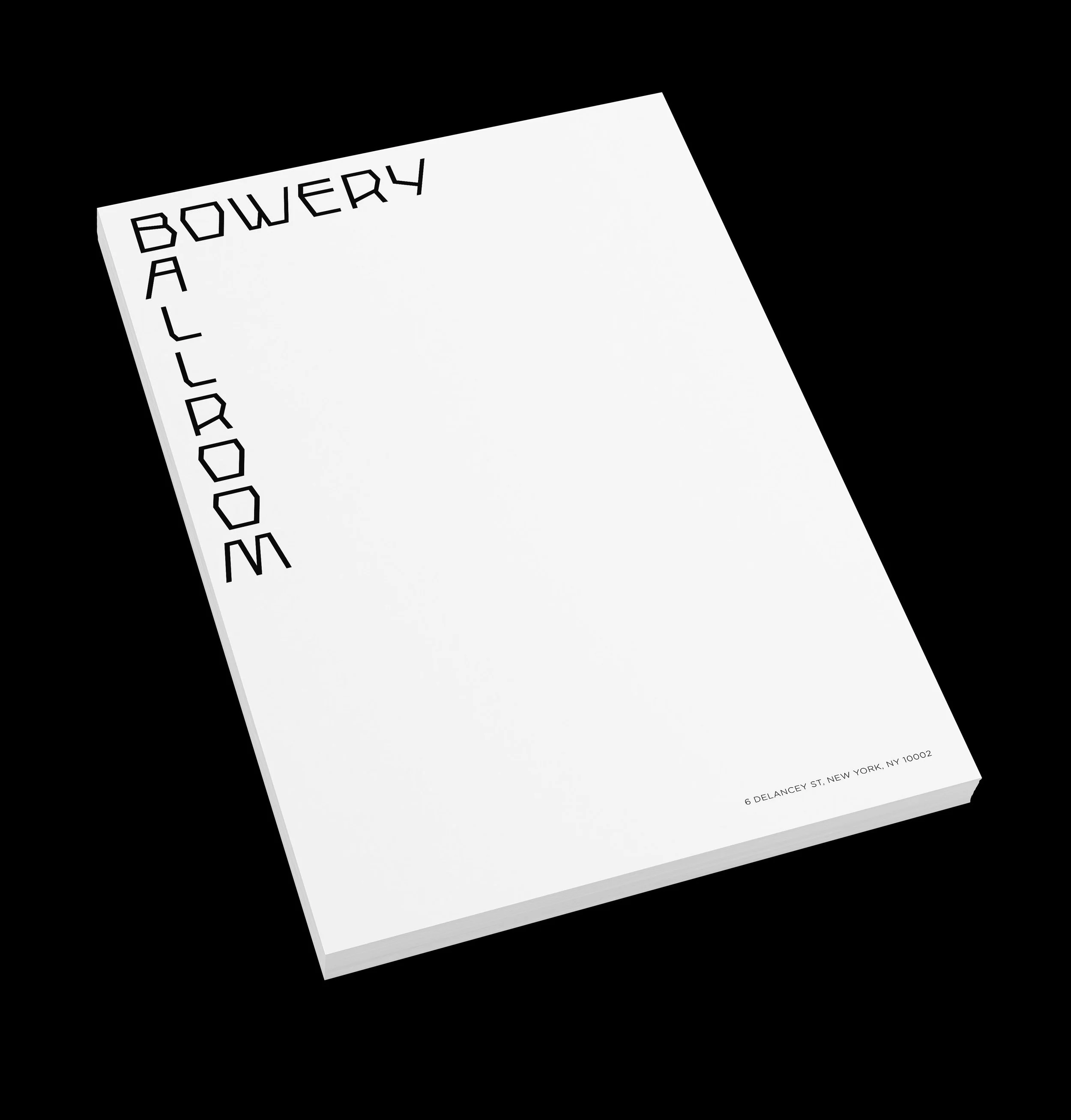 Bowery Ballroom branding proposal—a custom typeface inspired by the Art Nouveau stained glass mantle above the venue’s entrance and its ornamental metal grate.